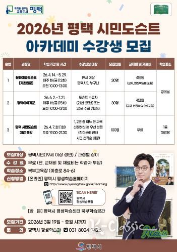 K-Classic News 기자 | 평택시는 2026년 ‘평택 시민도슨트 아카데미’ 학습자를 3월 19일부터 4월 6일까지 모집한다고 밝혔다.