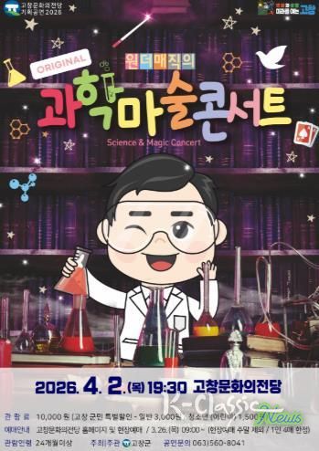 K-Classic News 기자 | 고창군에 따르면 고창문화의전당에서 마술쇼 ‘과학마술콘서트’ 공연이 오는 4월2일 저녁 7시30분에 진행된다.