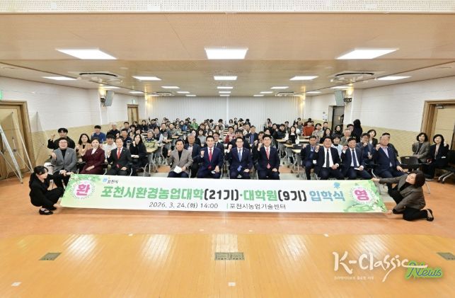 K-Classic News 기자 | 포천시는 지난 24일 포천시농업기술센터 대강당에서 신입생과 내빈 등 100여 명이 참석한 가운데 ‘2026학년도 포천시환경농업대학(22기) 및 대학원(9기) 입학식’을 개최했다.