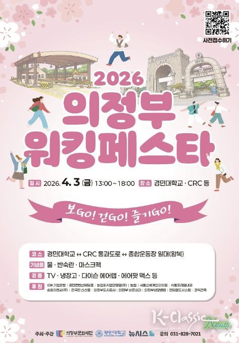 K-Classic News 기자 | 의정부문화재단은 오는 4.3. 오후 1시부터 경민대학교에서 미군반환공여지 캠프레드클라우드와 녹양동 종합운동장을 돌아오는 약 5km 거리의 걷기행사인 '2026 의정부 워킹페스타' 를 개최한다고 밝혔다.