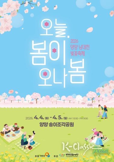 K-Classic News 기자 | 양양군이 오는 4월 4일부터 5일까지 이틀간 열리는 ‘2026 양양 남대천 벚꽃축제’를 앞두고, 관람객 안전 확보와 교통 대책 마련을 위한 최종 점검에 나섰다.