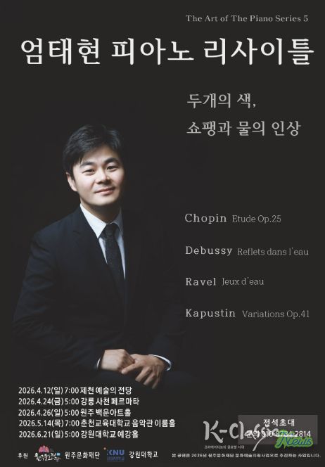 K-Classic News 기자 | 제천 출신 피아니스트 엄태현 피아노 리사이틀이 오는 4월 12일 7시 제천 예술의 전당에서 열린다.