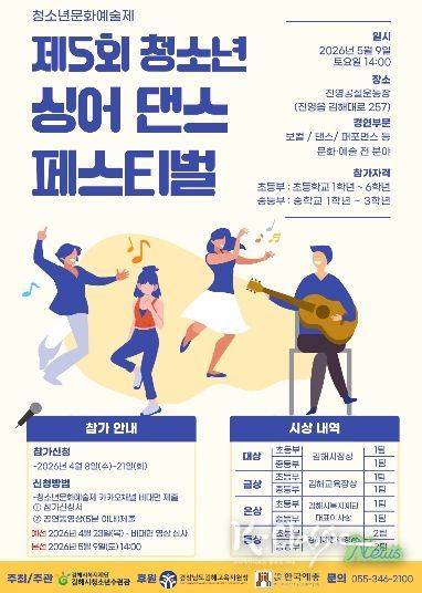 K-Classic News 기자 | (재)김해시복지재단(대표이사 임주택) 청소년수련관은 오는 5월 9일(토) 오후 2시부터 4시까지 진영운동장에서 청소년의 달을 맞아 ‘제5회 싱어댄스 페스티벌’을 개최한다고 밝혔다.