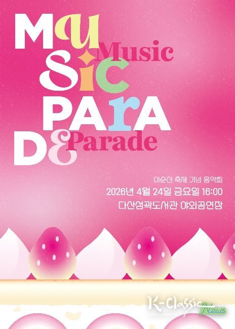 K-Classic News 기자 | 서울 중구문화재단은 이순신 축제를 기념하여 오는 4월 24일 오후 4시 다산성곽도서관 야외공연장에서 ‘뮤직 퍼레이드’를 개최한다.