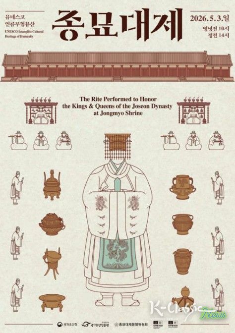K-Classic News 기자 | 국가유산청은 산하 국가유산진흥원, 종묘대제봉행위원회와 5월 3일 오후 2시 종묘(서울 종로구)에서 '2026년 종묘대제'를 봉행한다.