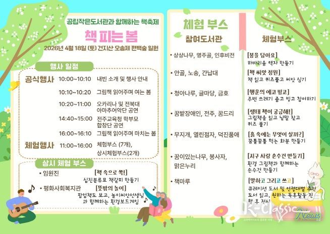 K-Classic News 기자 | 전주시 26개 공립작은도서관들이 힘을 모아 시민들에게 따스한 봄날, 책과 함께하는 특별한 추억을 선사하기로 했다.