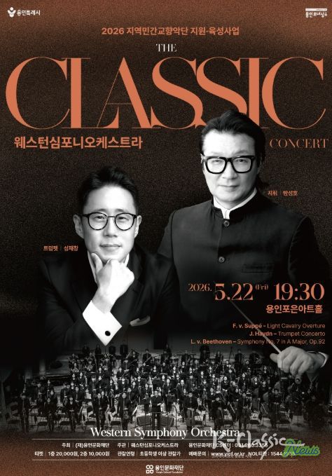 K-Classic News 기자 | 용인문화재단은 오는 5월 22일 오후 7시 30분, 용인포은아트홀에서 기획공연 '콘서트 'The 클래식''을 개최한다. 이번 공연은 ‘2026년 지역민간교향악단 지원육성사업’의 일환으로 진행되며, 세대를 아우르는 클래식 명곡들을 통해 시민들에게 클래식의 매력을 가까이에서 느낄 수 있도록 마련됐다.