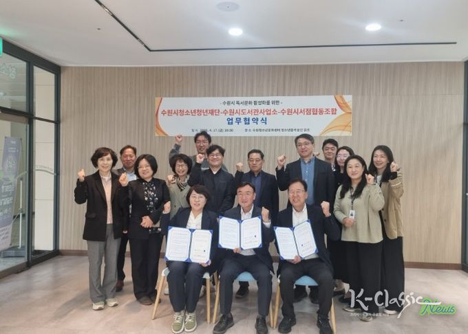 K-Classic News 기자 | 수원시 도서관사업소와 수원시청소년청년재단, 수원시서점협동조합이 지역 독서문화 활성화와 시민 독서활동 증진을 위해 협력하기로 했다.