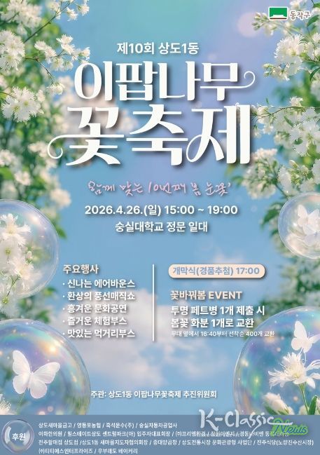 K-Classic News 기자 | 동작구는 오는 26일 숭실대학교 정문 일대(상도로 369)에서 ‘제10회 이팝나무 꽃 축제’를 개최한다고 밝혔다.
