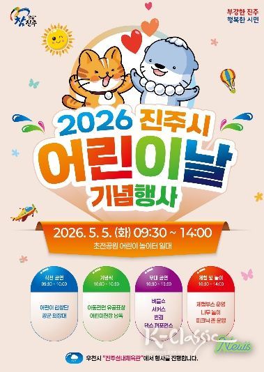 K-Classic News 기자 | 진주시는 제104회 어린이날을 맞아 5월 5일 초전공원 어린이 놀이터 일원에서‘2026년 어린이날 기념행사’를 개최한다.