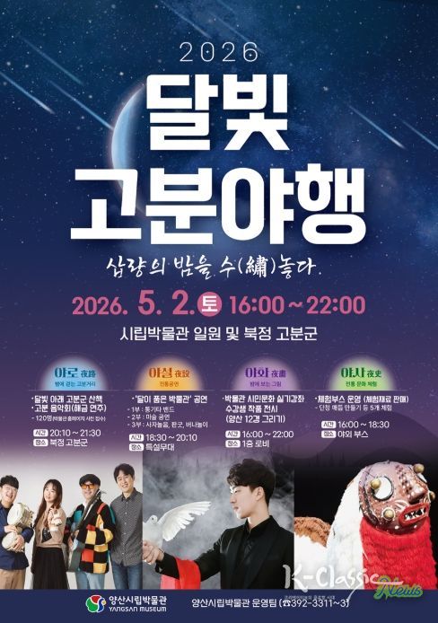 K-Classic News 기자 | 양산시립박물관(관장 신용철)은 5월 2일 박물관과 북정 고분군(사적 제93호) 일대에서 ‘2026 달빛 고분 야행(夜行)’을 개최한다고 밝혔다.