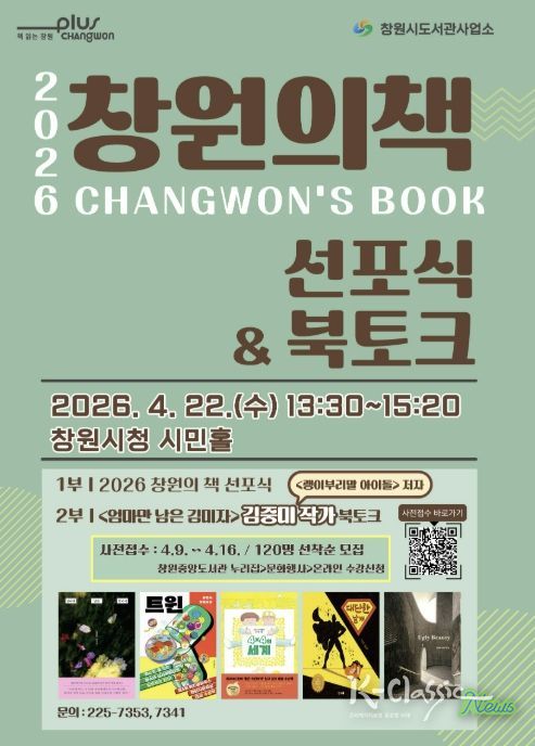 K-Classic News 기자 | 창원특례시 도서관사업소는 오는 4월 22일 오후 1시 30분, 창원시청 시민홀에서 시민들과 함께하는 ‘2026 창원의 책’ 선포식을 개최한다고 밝혔다.