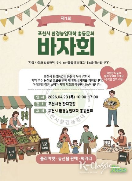 K-Classic News 기자 | 포천시 환경농업대학 총동문회가 오는 4월 23일, 지역사회와의 상생과 나눔을 실천하기 위한 ‘제1회 나눔 바자회’를 개최한다.
