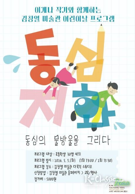 K-Classic News 기자 | 제주도립 김창열미술관이 어린이날을 맞아 5월 5일 초등학교 학생을 대상으로 특별 프로그램 ‘동심지화(童心之畵), 동심의 물방울을 그리다’의 참가자 30명을 모집한다.