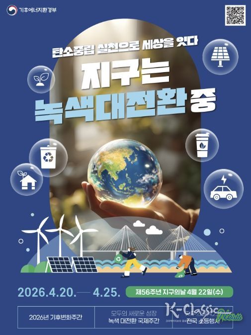 K-Classic News 기자 | 군포시는 제56주년 지구의 날을 맞아 4월 20일부터 25일까지 ‘제17회 기후변화주간’을 운영하며, 기후위기 대응과 탄소중립 실천 확산을 위한 다양한 홍보활동을 추진하고 있다고 밝혔다.
