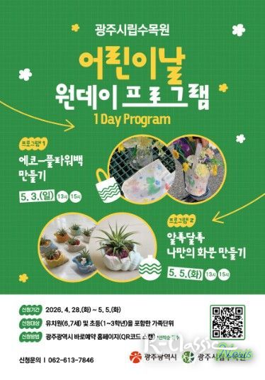 K-Classic News 기자 | 광주광역시 시립수목원은 어린이 가족이 함께 하는 ‘수목원 어린이날 원데이 프로그램’ 참가자를 오는 28일부터 선착순 모집한다.