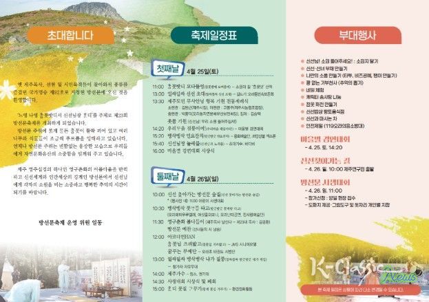 K-Classic News 기자 | 제주시는 ‘제23회 방선문 축제’가 4월 25일부터 26일까지 오라동 방선문 일대에서 개최된다고 밝혔다.