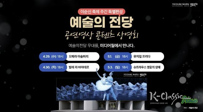 K-Classic News 기자 | 아산시는 4월부터 12월까지 이순신관광체험센터 ‘여해나루’ 미디어월에서 예술의전당 공연 영상 콘텐츠 ‘SAC ON SCREEN’을 상영한다고 밝혔다.
