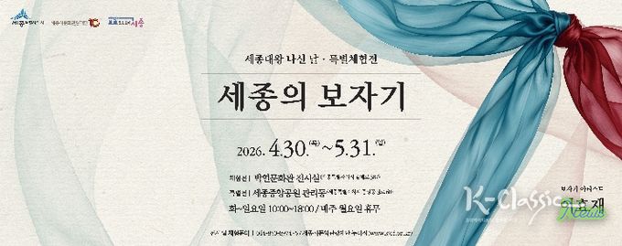 K-Classic News 기자 | (재)세종시문화관광재단은 제629돌 세종대왕 나신 날(5월 15일)을 기념하여 4월 30일부터 5월 31일까지 박연문화관 전시실과 세종중앙공원 관리동에서 특별체험전 ‘세종의 보자기’를 선보인다.