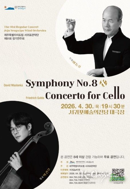 K-Classic News 기자 | 서귀포시는 4월 30일 19시 30분 서귀포예술의전당 대극장에서 ‘제주특별자치도립 서귀포관악단 제91회 정기연주회’를 개최한다.