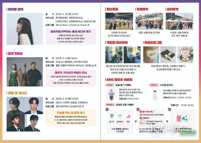 K-Classic News 기자 | 통영시는 오는 5월 2일 강구안 해상무대 및 일원에서 '2026 강구안 나이트 프린지, ‘투나잇 통영 즐거울 樂’'두 번째 공연을 개최한다.