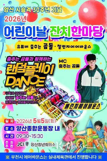 K-Classic News 기자 | 양산시는 5월 5일 9시 30분부터 15시 30분까지 양산종합운동장 주경기장에서 '2026년 어린이날 잔치 한마당' 행사가 개최된다고 밝혔다.