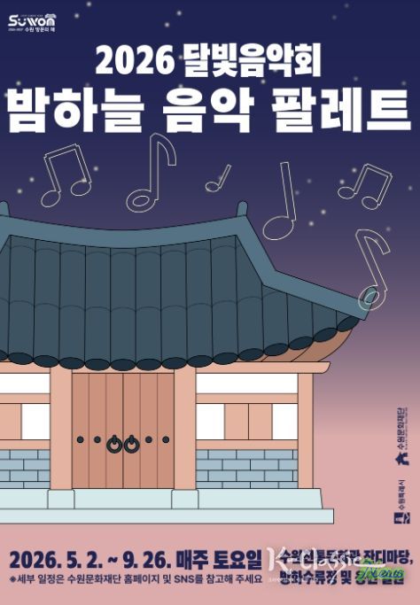 K-Classic News 기자 | 수원문화재단은 오는 5월부터 9월까지 국가유산과 자연, 음악이 어우러진 야간 공연 프로그램 '2026 달빛음악회 '밤하늘 음악 팔레트'’를 운영한다.