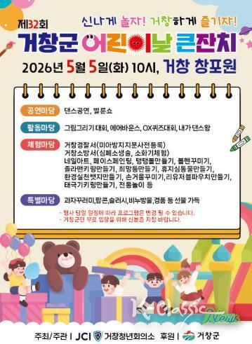 K-Classic News 기자 | 거창군은 제104회 어린이날을 맞아 오는 5월 5일 거창 창포원 일원에서 ‘제32회 거창군 어린이날 큰잔치’를 개최한다.