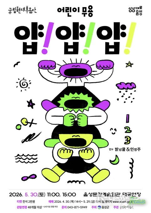 K-Classic News 기자 | 음성군은 어린이들을 춤의 세계로 초대하는 국립현대무용단의 어린이 무용 '얍! 얍! 얍!'을 오는 5월 30일 음성문화예술회관에서 개최한다고 밝혔다.