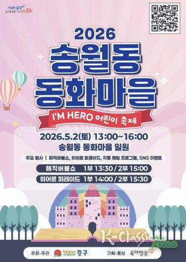 K-Classic News 기자 | 인천시 중구는 어린이날을 맞아 오는 5월 2일 ‘2026년 송월동 동화마을 어린이 축제’를 개최한다고 밝혔다.