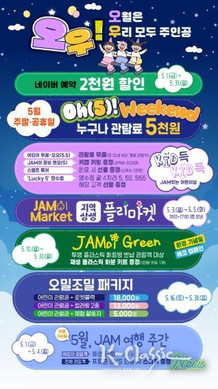 이외에도 보다 많은 관람객이 부담 없이 방문할 수 있도록 5월 주말 및 공휴일에는 관람료 5천원 이벤트도 진행되며 5월 3일부터 5월 5일까지 도내 중소상공인 판로지원을 위한‘JAM이 Market’도 운영된다. 자세한 내용은 제주항공우주박물관 홈페이지에서확인할 수 있다.