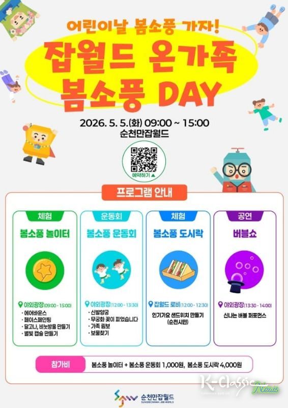 K-Classic News 기자 | 순천시는 오는 어린이날을 맞아 순천만잡월드에서 ‘잡월드 온가족 봄소풍 DAY’이벤트를 개최한다고 밝혔다.