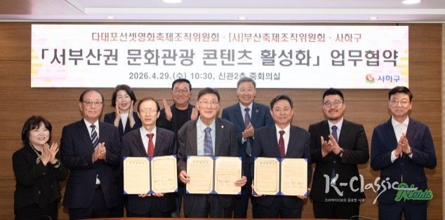 K-Classic News 기자 | 부산 사하구는 서부산권에서 개최되는 축제 및 문화 행사를 중심으로 지역 문화관광 콘텐츠의 발전 가능성을 함께 모색하고 지속가능한 협력 기반을 마련하기 위해 4월 29일 다대포선셋영화축제조직위원회, 부산축제조직위원회와 업무협약을 체결했다고 밝혔다.