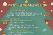 K-Classic News 기자 | 동두천시 오르빛도서관이 개관 1주년을 맞아 12월 한 달간 다채로운 문화행사를 진행한다. 오르빛도서관은 지난해 12월 개관 이후 시민들의 높은 관심 속에 지역 대표 독서문화 공간으로 자리매김해왔다. 이번 행사는 지역 주민과 함께 도서관의 성장을 기념하고, 책과 문화가 어우러지는 복합문화공간으로서의 역할을 강화하기 위해 마련됐다. 우선 12월 6일에는 1주년 기념 특별행사가 열린다. '제이시아'와 함께하는 클래식 콘서트, '김슬기 작가 초청 1인 어린이 인형극', 가족 참여형 '크리스마스 무드등 만들기 체험' 등이 진행되며, 카카오톡 친구 추가 이벤트와 떡 나눔 행사 등 시민이 함께 즐길 수 있는 프로그램도 준비된다. 이어 12월 9일에는 '김민식 작가 초청 특강'이 예정되어 있다. 특강은 도서관 4층 어린이자료실에서 시민 100명을 대상으로 진행되며, 시민의 문화 감수성을 높이고 독서문화 저변을 확대하는 계기가 될 것으로 기대된다. 이 밖에도 이용자 설문조사, ‘나만의 서재 꾸미기’ 프로그램, 축하 메시지 게시, 도서 대출 이벤트, 1주년 기념 축하영상 상영