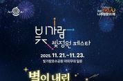 K-Classic News 기자 | 전라남도 나주시가 깊어지는 가을밤, 시민과 관광객에게 환상적인 빛의 향연을 선사한다. 나주시는 오는 11월 21일부터 23일까지 3일간 빛가람 호수공원 일원에서 ‘별이 내린 빛의 정원’을 주제로 ‘2025 빛가람 빛정원 페스타’를 개최해 시민과 함께하는 늦가을 야간축제의 낭만을 밝힌다. 나주시는 이번 축제가 빛과 자연, 예술이 어우러진 도심형 야간정원 축제로 환상적인 조명 연출과 미디어아트를 통해 관람객이 마치 동화 속에 들어온 듯한 ‘빛의 정원’을 체험할 수 있도록 준비하고 있다고 10일 밝혔다. 개막식은 11월 21일 저녁 6시 식전 공연을 시작으로 7시 개막선언과 미디어퍼포먼스 크루의 개막 공연, 점등 퍼포먼스, 빛정원 라운딩 순으로 진행된다. 빛과 음악, 미디어아트가 어우러지는 개막 무대를 통해 축제의 서막을 화려하게 장식할 예정이다. 이번 페스타의 하이라이트인 빛 조형물 전시 구간은 빛가람호수공원 야외무대 뒤 여울다리 입구에서 베매산 산책길까지 이어진다. 다채로운 빛 조형물과 미디어아트 장식이 조성돼 밤하늘 아래 반짝이는 ‘
