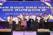 K-Classic News 기자 | 경상남도는 5일 창원컨벤션센터에서 열린 ‘제64회 경상남도 문화상 시상식 및 경남예술인의 밤’에서 “오늘 수상자 한 분 한 분은 평생을 한 분야에서 고집스럽게 열정을 갖고 노력해 오신 훌륭한 예술인”이라며 축하의 뜻을 전했다. 이어 “경남의 문화예술인분들 덕분에 올 한해 도민들이 예술을 통해 생활 속 활력을 찾고 아름다움과 행복을 느낄 수 있었다”라며 감사 인사를 덧붙였다. 1962년 제정돼 64년째 이어지고 있는 ‘경상남도 문화상’은 지역 문화예술 발전에 기여한 인물을 선정하는 도내 최고 권위의 상으로, 지금까지 총 380명의 수상자를 배출하며 지역 문화예술사의 굵직한 발자취를 남겨왔다. 올해는 총 7개 부문에서 문화예술계의 오랜 헌신과 성취를 보여준 인물이 수상자로 선정됐다. ❶(학술․교육 부문) 故 김주석 화백, ❷(문학 부문) 김미숙 시인, ❸(조형예술 부문) 김진량 통도요 대표, ❹(공연예술 부문) 전민규 큰들문화예술센터 예술감독, ❺(문화․언론 부문) 리영달 치과의사, ❻(체육 부문) 이수소 경남체육발전협의회 회장, ❼(청년 부문) 최성진 따가다가 아트컴퍼니