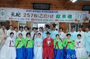K-Classic News 기자 | 대설위 상주향교에서는 2025년 9월 28일 명륜당과 대성전에서 공부자(孔夫子) 탄강(誕降) 2576년을 맞아 50여 명의 상주시 관내 여성회원들이 참여한 가운데 ‘공부자 탄강 경축 헌다례’를 성대하게 올렸다. 상주향교의 헌다례는 상주차문화원과 상주향교 사회교육원 다도반원들이 주축이 되어 국가유산청의 ‘우리고장 국가유산 활용사업’의 일환으로 봉행했다. 헌관에는 임현숙 원장이 초헌관으로 집전을 했다. 동분헌관에는 박춘옥, 이진계씨, 서분헌관에는 박영화, 추귀분씨, 집례는 이재연씨, 대축에는 우명옥씨, 묘사는 조재석 교육원장, 알자에는 이미경씨, 찬인에는 이연옥, 양현진씨 그리고 전다에는 남윤자, 김선희씨, 점다에는 김경순씨, 봉향에는 천세연씨, 봉로에는 김숙희씨, 봉다에는 서옥희씨, 사세에는 최장은씨, 제생으로는 김명희, 김귀순, 안용당, 이정희 씨가 수고를 했다. 헌다례 행사는 전폐례(奠幣禮), 헌다례(獻茶禮), 분헌례(分獻禮), 음복례(飮福禮), 망요례(望燎禮) 순으로 진행했으며, 정성껏 달인 차를 비롯하여 오성위에는 2변 2두를, 종향위에는 1변 1두를 진설하여 회원