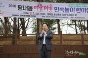 K-Classic News 기자 | 남양주시는 지난 28일 병오년 정월대보름을 맞아 호평동 사회단체협의회가 호평평내행정복지센터 앞마당에서 주민과 함께하는 지신밟기 및 척사대회를 개최했다고 3일 밝혔다. 이날 행사에는 호평동 사회단체회원과 지역 주민 등 200여 명이 참여한 가운데 진행됐다. 행사는 천마산풍물패 사물놀이로 흥겨운 시작을 알렸다. 이어 호평동 주민의 안녕과 번영을 기원하는 지신제를 올려 전통문화의 의미를 더했다. 윷놀이 경기에서는 이웃 간 정을 나누는 주민 화합의 장이 펼쳐졌다. 주광덕 남양주시장은 “우리 고유의 민속놀이 지신밟기와 척사대회 추진에 애써주신 사회단체 여러분께 감사하다”며 “붉은 말의 해를 맞아 남양주시가 인구 100만 메가시티로 도약하고, 시민이 체감할 수 있는 자족도시로 성장하는 뜻깊은 한 해가 되길 기원하며 시에서도 최선의 노력을 다하겠다”고 전했다. 이번 행사를 주관한 권순욱 회장은 “오늘 행사에 참여한 지역 주민들의 건강과 평안을 기원한다”며 “앞으로도 다양한 행사를 통해 호평동 주민이 함께 화합할 수 있도록 더욱 노력하겠다”고 밝혔다.