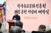 K-Classic News 기자 | 논산시는 26일 노성면에 위치한 한국유교문화진흥원에서 ‘기념비 제막식’을 개최했다. 제막식에는 조관행 노성면 어르신회장을 비롯해 백성현 논산시장, 조용훈 논산시의회의장 및 시 의원, 관내 유관기관과 단체 관계자 등 200여 명이 참석했다. 백성현 논산시장은 “이 세상은 누군가의 희생과 헌신의 씨앗으로 피어나는 꽃과 같다”며 “민족의 얼을 길이 보전하기 위해 큰 결심을 해 주신 종중 어르신들께 깊은 감사의 인사를 드린다”고 말했다. 이어 “전 세계적으로 유학에 대한 관심이 높아지고 있는 만큼, 한국유교문화진흥원은 논산의 뿌리깊은 유교 문화와 정신을 널리 전파하는 중심 역할을 하게 될 것”이라며 “문화, 경제, 농업, 국방 등 모든 분야에서 논산의 가치를 높이기 위해 실천하는 행정을 펼쳐 나가겠다”고 말했다. 지난 2022년 개관한 한국유교문화진흥원은 한국유교문화와 충청지역 국학의 대표적인 연구기관이다. 건립 과정에서 파평윤씨노성대종중은 약 2만 평의 토지를 기부하며 논산이 지닌 유교적 가치와 정신을 후대에 온전히 계승하고 지역 문화의 뿌리를 굳건히 세울 수 있