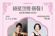K-Classic News 기자 | 안동문화예술의전당의 올해 브런치 콘서트는 바로크에서 근현대에 이르기까지, 클래식 음악이 걸어온 시간을 따라가는 시대별 시리즈로 구성된다. 매월 둘째 주 수요일 아침에 진행되는 이번 시리즈의 첫 무대, 〈바로크의 아침Ⅰ – 바흐와 헨델의 칸타타〉가 오는 3월 11일 오전 11시 안동문화예술의전당 백조홀에서 열린다. 바로크 시대를 대표하는 작곡가 요한 제바스티안 바흐와 게오르크 프리드리히 헨델의 작품을 통해 바로크 음악 특유의 정교한 구조와 풍부한 선율, 섬세한 표현을 만날 수 있다. 연주는 바로크 오보에 신용천, 바로크 바순 김혜민을 중심으로 하프시코드 아렌트 흐로스펠트가 함께하는 ‘서울바로크 앙상블’과 소프라노 윤지가 참여해 바로크 특유의 섬세한 표현과 음색을 선보인다. 특히 바로크 관악기의 부드러우면서도 깊이 있는 음색과 하프시코드의 섬세한 화성이 어우러져 당시 음악의 음향적 특징을 생생하게 전달할 예정이다. 또한 이준형 평론가가 해설로 참여해 작품의 배경과 음악적 특징을 쉽고 흥미롭게 풀어내며, 클래식 음악을 처음 접하는 관객부터 애호가까지 누구나 부담 없이 공연을 즐길 수 있는