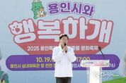 K-Classic News 기자 | 이상일 용인특례시장은 19일 처인구 마평동의 ‘SERI PAK with 용인’ 앞 천연잔디광장에서 열린 ‘2025 용인시와 행복하개’ 축제에 참석해 반려동물 가족과 함께 소통하는 시간을 가졌다. 이번 행사는 반려동물과 시민들이 함께 어울리며 공존할 수 있는 문화를 확산하고, 유기동물 입양을 장려하기 위해 마련됐다. 이날 행사장에는 가족 단위 시민과 반려인 등 5000여 명이 방문해 축제 분위기를 함께 즐겼다. 이상일 시장은 인사말에서 “시는 매년 반려동물과 함께하는 축제를 열며 반려문화 확산과 동물복지 향상을 위해 꾸준히 노력하고 있다”며 “지난해까지 시청 광장에서 열렸던 행사를 올해는 더 좋은 환경에서 시민과 반려동물들이 축제를 즐길 수 있도록 이곳 천연잔디광장으로 옮겨 개최했다”고 말했다. 이 시장은 “용인 시민 110만명 중 25만여 명이 15만 반려동물과 함께하고 있다”며 “앞으로도 반려동물 복지증진과 시민 인식개선을 위한 정책을 지속적으로 추진해 나가겠다. 화창한 가을 날씨 속에서 반려동물과 함께 즐거운 추억 많이 남기시길 바란다”고 했다. &nb