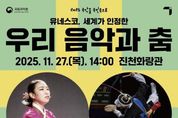 K-Classic News 기자 | 충북 진천군은 오는 27일 오후 2시, 진천 화랑관에서 국립국악원의 순회공연 ‘국악을 국민 속으로’를 개최한다고 밝혔다. 이번 공연은 대한민국을 대표하는 전통 예술기관인 국립국악원이 주관하는 ‘2025 국악을 국민 속으로’ 공모사업에 진천군이 선정되면서 마련됐다. 해당 공연은 흥겨운 판소리와 민요, 아리랑 등 한국 고유의 정서를 담은 다채로운 프로그램으로 구성돼, 남녀노소 누구나 즐길 수 있는 국악 공연이다. 특히, 서울에서만 만나볼 수 있던 수준 높은 공연을 진천군민이 가까이에서 감상할 수 있는 뜻깊은 시간이 될 예정이다. 김현지 군 문화관광과 주무관은 “이번 공연을 통해 군민들이 우리 전통음악의 아름다움을 만끽하길 기대한다”며 “앞으로도 다양한 장르의 공연을 유치해 군민들의 문화 향유 기회를 확대해 나가겠다”고 말했다.
