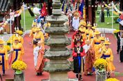K-Classic News 기자 | 화성특례시는 10월 18일, 용주사(주지 성효 스님) 일원에서 민족의 평화와 안녕을 기원하는 불교 전통의례 ‘불기 2569년 수륙대재’를 봉행했다고 밝혔다. 수륙대재는 물과 육지에서 떠도는 외로운 무주고혼들을 위로하고 구제하기 위해 부처님의 가르침을 설하고 음식을 공양하는 불교의식이다. 용주사는 고려시대부터 이어져온 이 전통문화를 현대에 되살리고 시민들의 문화 향유 기회를 확대하고자 2017년부터 수륙대재를 정기적으로 봉행해오고 있다. 특히 올해 용주사 수륙대재는 역사성을 한층 더 부각시켰다는 평을 받았다. 영가들을 맞는 시련의식을 시작으로 옛 수륙재가 그러했듯 왕의 교지와 하사품을 전달하는 역할을 화성특례시장(정명근 시장)이 진행하여 전통문화 고증에 신경을 쏟은 모습이였다. 그 후로는 영가를 대접하고 깨끗하게 목욕시키는 대령, 관욕 의식, 수륙재 공간을 정돈하고 설행 공간을 정하는 사자단과 오로단, 상단과 중단, 하단의식, 등 불교 전통 의례의 정수를 보여주었다. 정명근 화성시장은 축사에서“정조대왕의 효심과 애민 정신이 녹아있는 용주사에서 진행되는 수륙대재