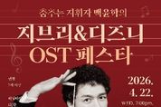 K-Classic News 기자 | 동작구가 오는 22일 오후 7시, 원불교 소태산홀(현충로 75)에서 ‘춤추는 지휘자 백윤학의 지브리&디즈니 OST 페스타’를 개최한다고 밝혔다. 동작문화재단이 주최·주관하는 이번 행사는 4월 ‘문화가 있는 날’을 맞아, 어린이부터 장년층까지 전 세대가 함께 공감하고 즐길 수 있도록 기획됐다. 백윤학은 영남대학교 음악대학 교수이자 ‘서울 페스타 필하모닉 오케스트라’를 이끄는 지휘자로, 음악을 온몸으로 표현하는 독특한 지휘 스타일로 주목받고 있다. 이번 공연에서는 ‘서울 페스타 필하모닉 오케스트라’, 보컬리스트 ‘이희주’와 함께 전 세계적으로 사랑받는 애니메이션 명곡들을 오케스트라의 웅장한 사운드로 재해석해 선보일 예정이다. 관객들은 무대를 통해 ▲마녀배달부 키키 ▲하울의 움직이는 성 ▲벼랑 위의 포뇨 ▲천공의 성 라퓨타 ▲이웃집 토토로 ▲센과 치히로의 행방불명 등 지브리 대표 작품의 주제곡을 아름다운 선율로 감상할 수 있다. 또한 ▲라이온킹 ▲인어공주 ▲인크레더블 ▲주토피아 ▲모아나 ▲알라딘 등 세대를 아우르는 디즈니 명작 OST도 섬세한 연주와