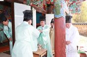 K-Classic News 기자 | 경남 의령 태암서원(대표 전임수)은 13일 헌관을 비롯한 담양전씨 후손 및 관내·외 유림 등 40여 명이 참석한 가운데 춘기대제를 봉행했다고 밝혔다. 이날 대제의 초헌관은 오태완 의령군수, 아헌관은 진주 유림 성득찬 씨, 종헌관은 대구 유림 한대곤 씨가 각각 맡아 헌작했다. 제례는 전통 제례복을 갖춘 참석자들의 엄숙한 분위기 속에서 진행됐다. 향을 피우고 예물을 올리는 전폐례를 시작으로 조헌례·아헌례·종헌례 등 헌작례와 분헌례, 음복례가 차례로 이어졌으며, 축문을 태우는 망료례를 끝으로 마무리됐다. 한편, 의령군 용덕면 죽전리에 위치한 태암서원은 1998년 1월 15일 경상남도 문화유산자료로 지정된 곳이다. 고려 후기 학자인 문원공(文元公) 전조생(田祖生)과 그의 손자 전자수(田子壽)의 학문과 덕행을 기리기 위해 매년 음력 2월 말정일(末丁日·춘기)과 10월 10일(추기) 두 차례에 걸쳐 제향을 올리고 있다.