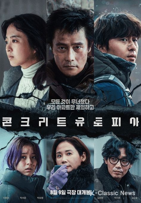 '콘크리트 유토피아'는 대지진으로 폐허가 되어 버린 서울, 유일하게 남은 황궁 아파트로 생존자들이 모여들며 시작되는 이야기를 그린 재난 드라마다.