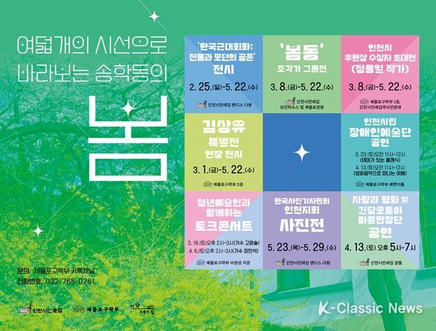 K-Classic News 기자 | 인천광역시는 5월 22일까지 개항기 근현대 역사를 간직한 ‘송학동 역사산책공간’일대에서 ‘여덟 개의 시선으로 바라보는 송학동의 봄’을 주제로 다양한 전시와 공연을 선보인다고 밝혔다.