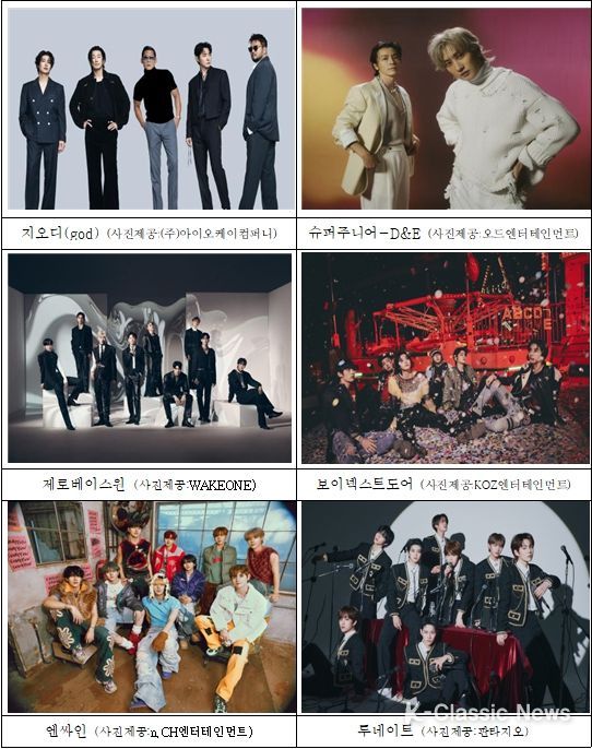 그 주인공은 '지오디(god)', '슈퍼주니어-D&E', '제로베이스원(ZEROBASEONE)', '보이넥스트도어(BOYNEXTDOOR)', '엔싸인(n.SSign)' 등이다.