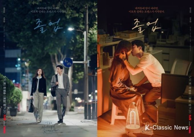 그런 가운데 공개된 미드나잇 로맨스 포스터 2종은 대치동의 밤을 물들일 서혜진과 이준호의 모습으로 설렘을 자아낸다. 먼저 서혜진과 이준호의 나란한 퇴근길이 시선을 사로잡는다.