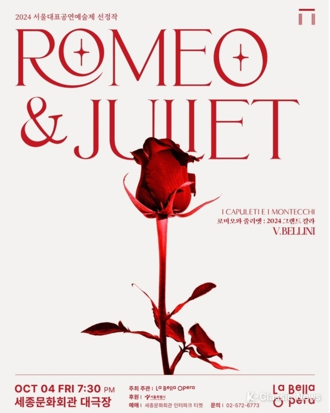 이번 공연은 위대한 작곡가 '빈센초 벨리니'의 첫번째 걸작이라 칭송받는 오페라 <로미오와 줄리엣>(원제 : I Capuleti e i Montecchi ) 이다. 전막 콘서트 오페라로 구성되어 있으며, 벨칸토 오페라의 정수를 만나보실 수 있는 작품이라고 주최 측은 말한다.